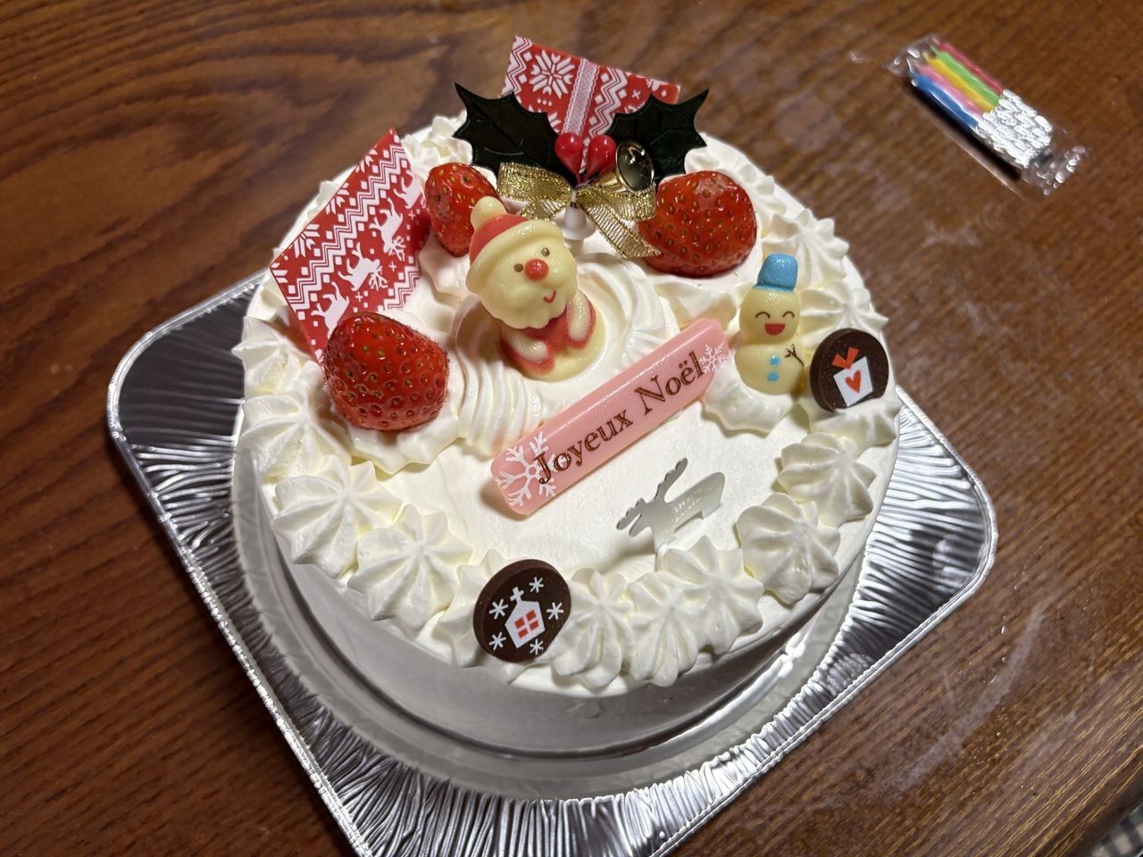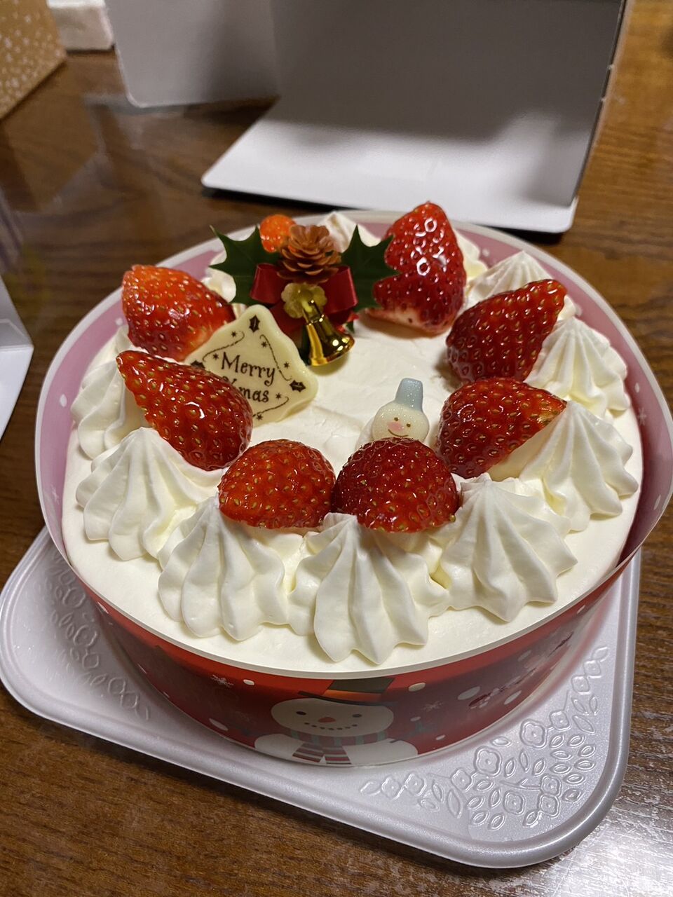三男がバイト先でクリスマスイブの前日に、ケーキ貰ってきました。ご相伴に預かりました。