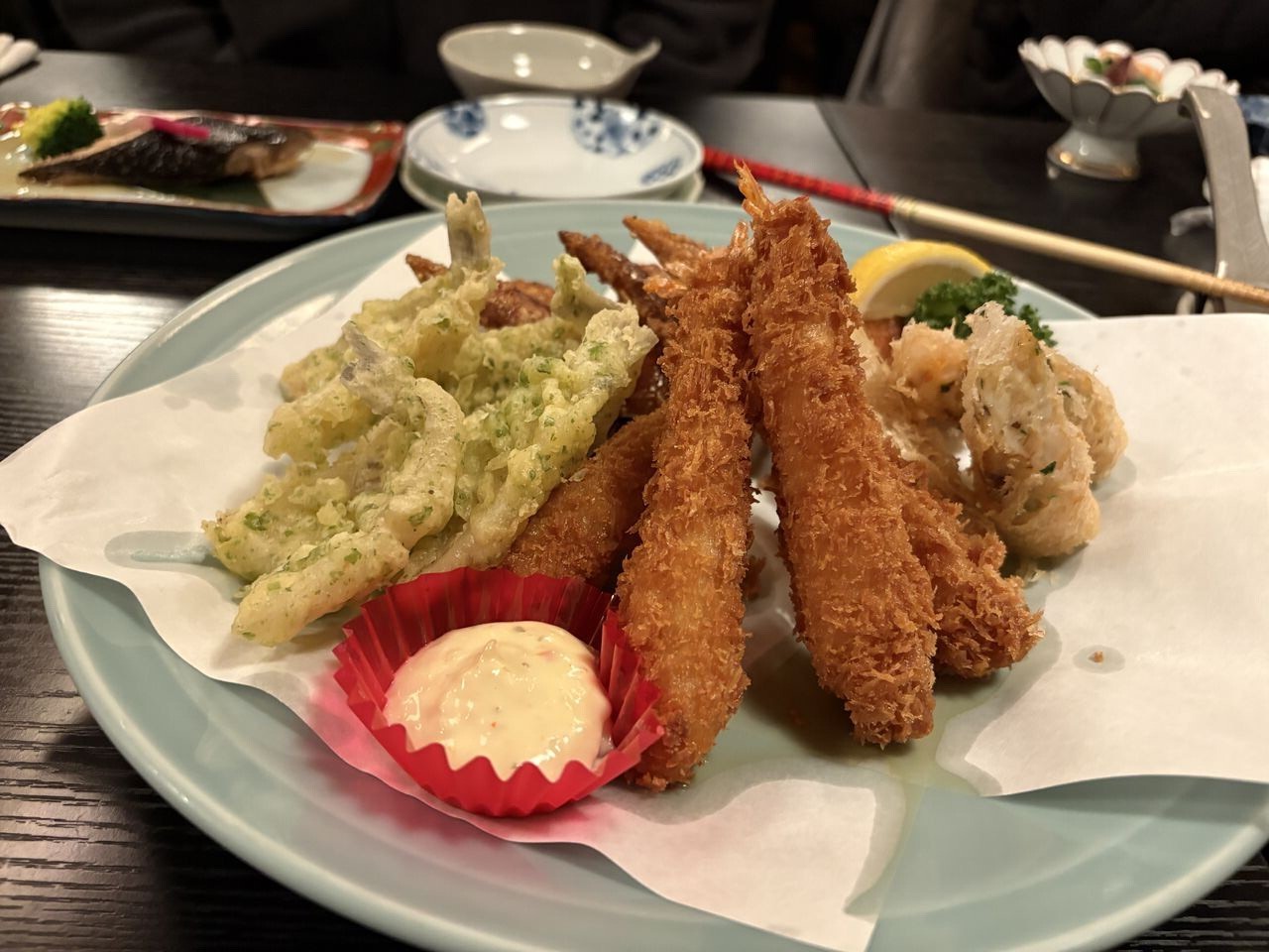 エビフライ等。 刺身、船盛。