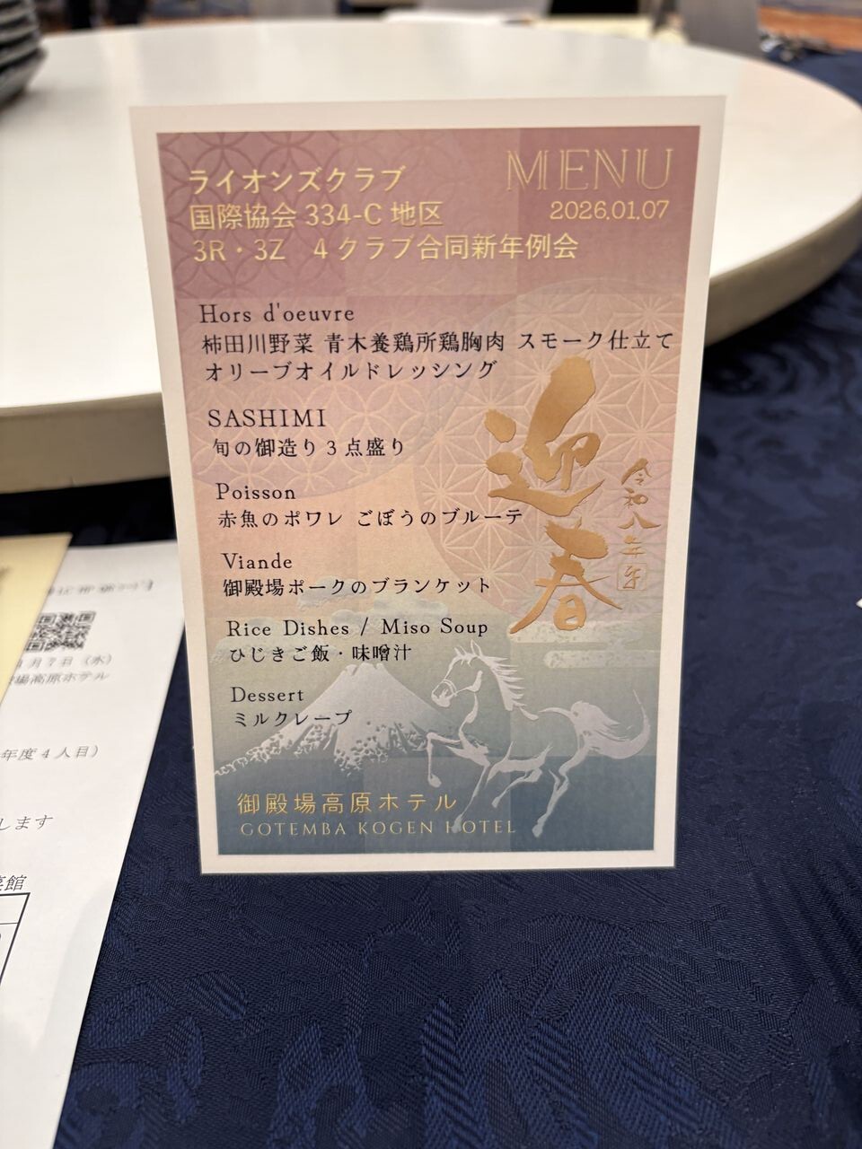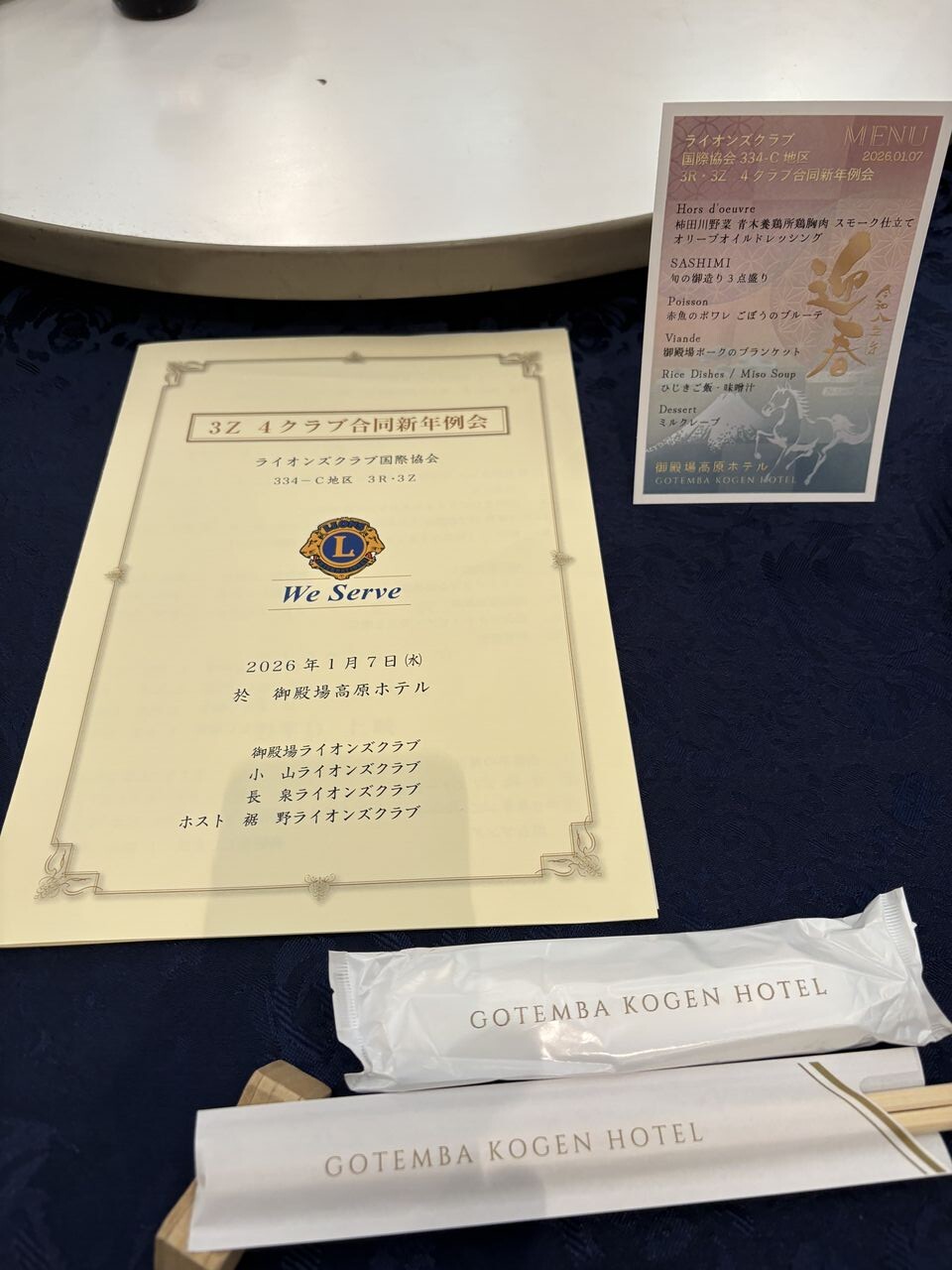 この日はライオンズクラブ334-C 地区3R3Z 4クラブ合同新年例会でした。