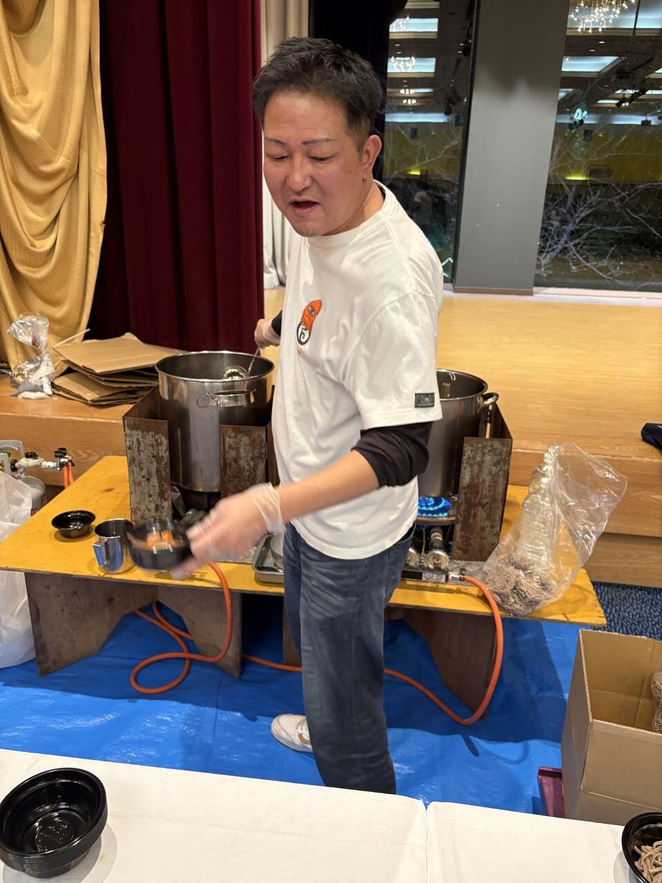 御厨蕎麦を作る勝又くん。