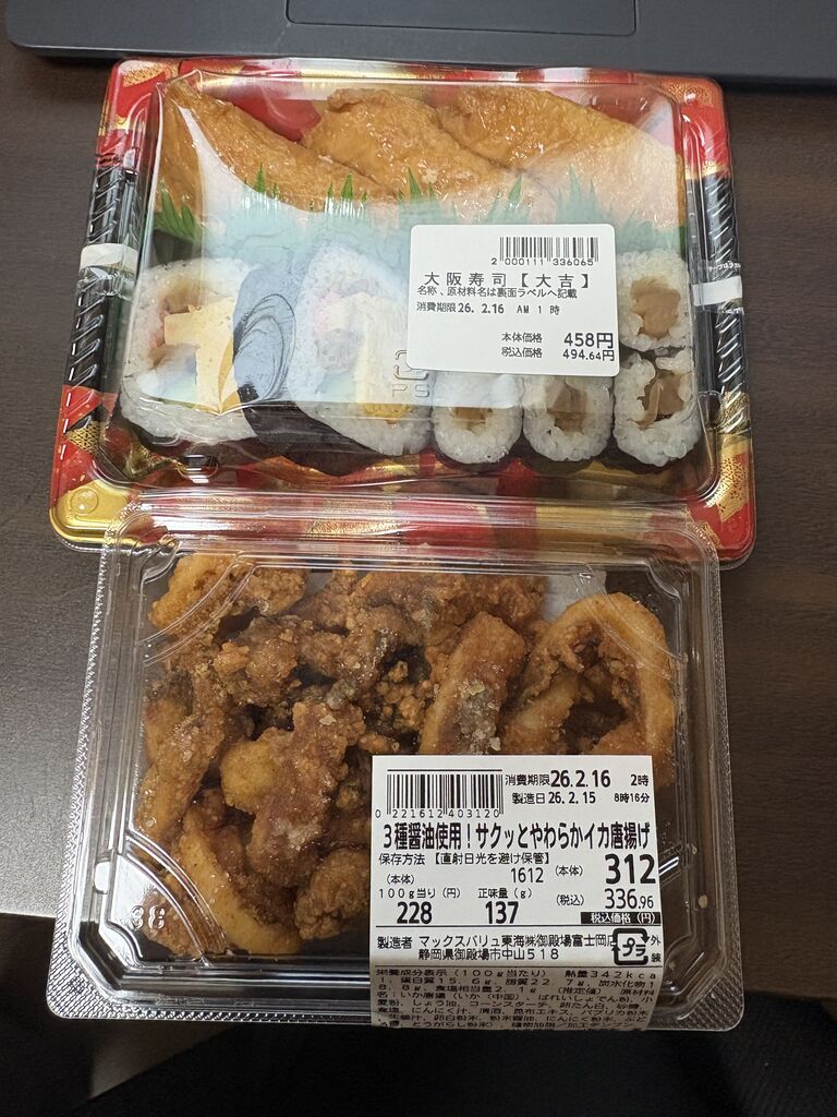 そして、マックスバリュで朝飯を買って帰りました。