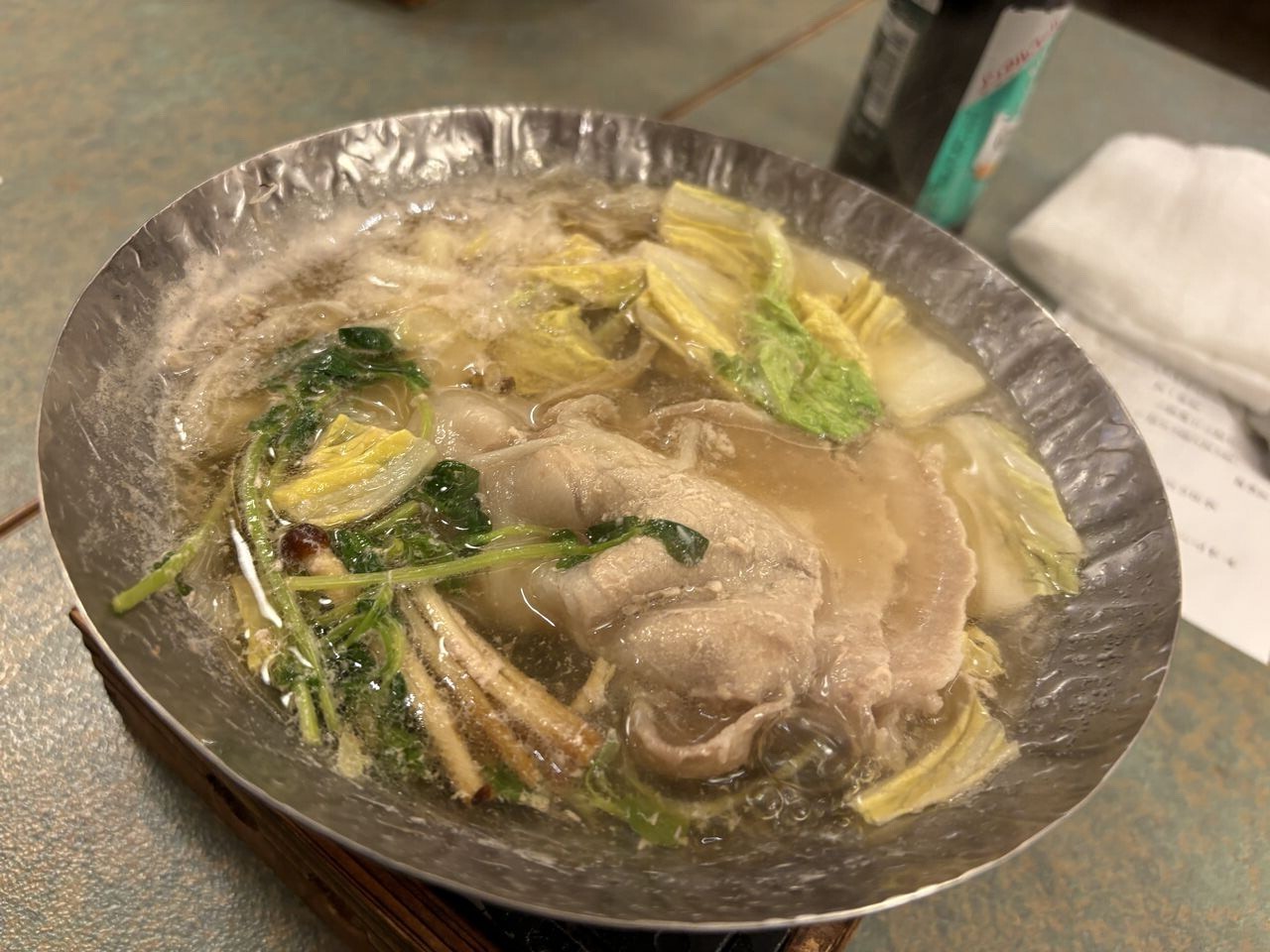 本日のお品書き。 あじ豚の鍋。