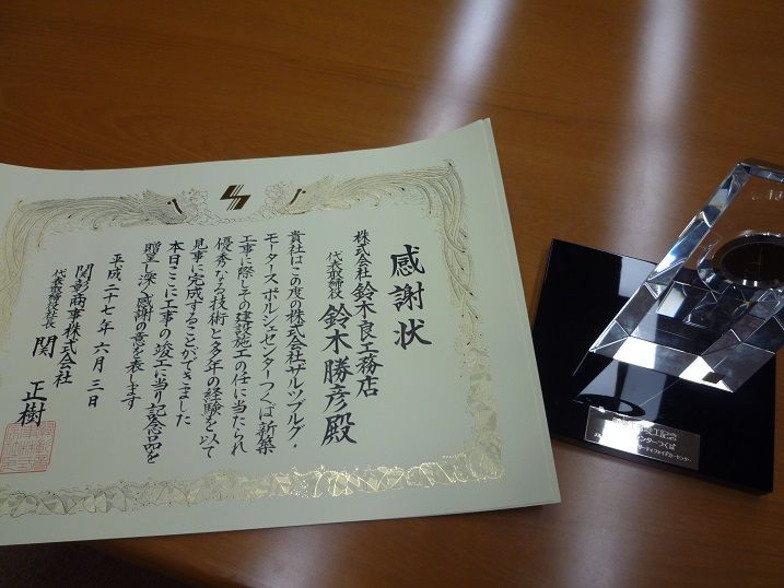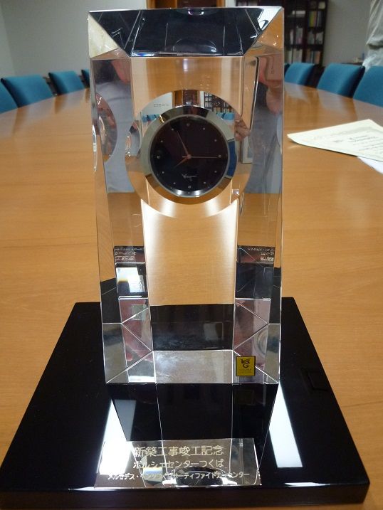 感謝状と記念品のクリスタル時計をいただいた報告がありました