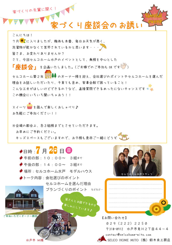 7/26(日)セルコホームのオーナー様にお越しいただいて