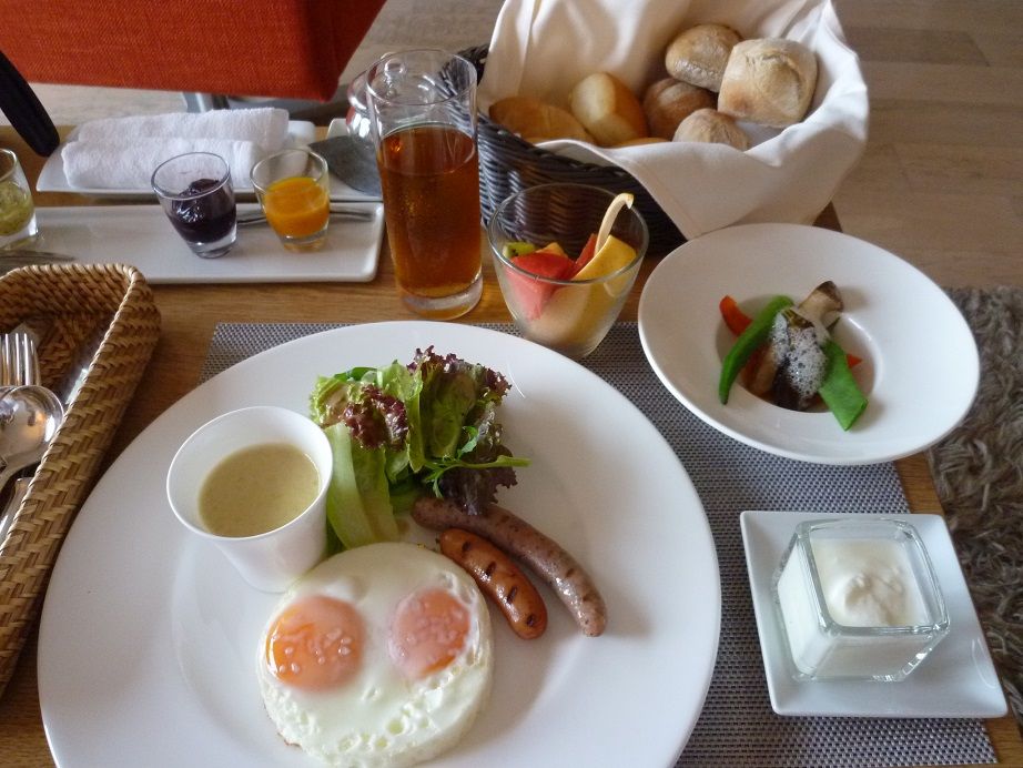 部屋に運んでくれるこちらの朝食