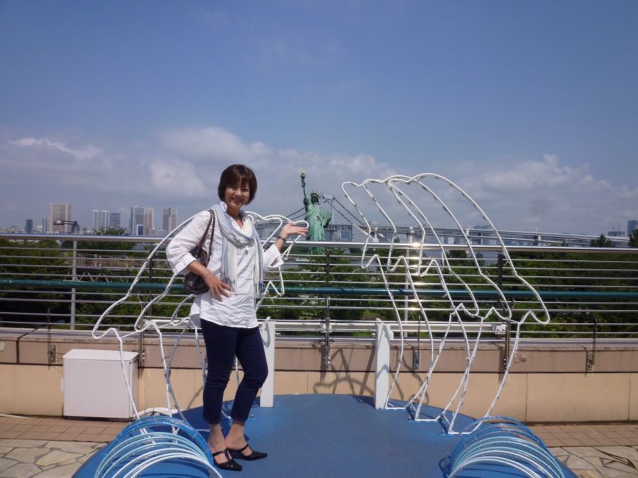 自由の女神と記念撮影