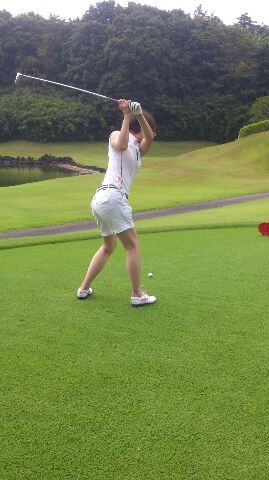 こちらが華麗なるティーショット寸前の姉さん